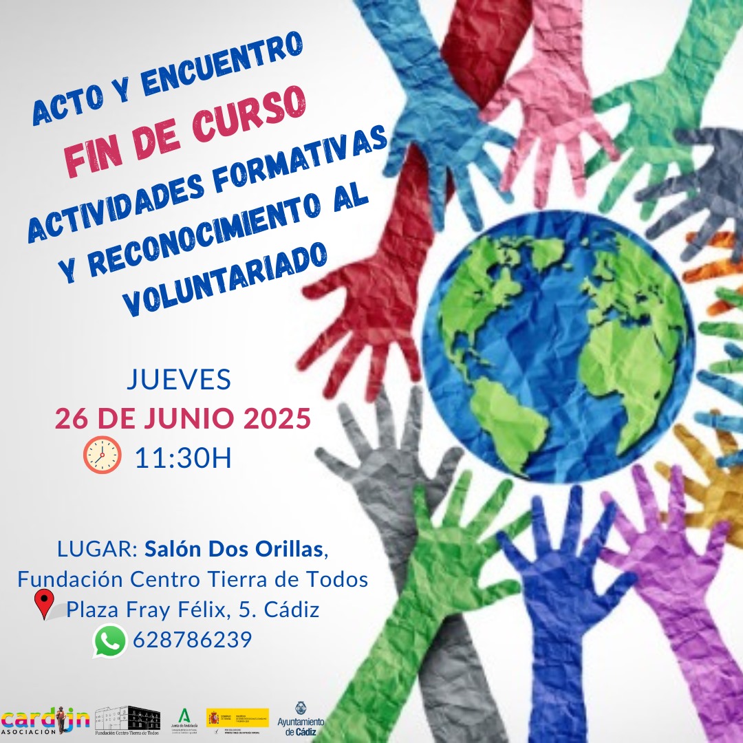 11:30h celebraremos, como cada año, el ACTO-ENCUENTRO de CLAUSURA de las actividades formativas realizadas en el primer semestre del año y, como no podía ser de otra forma, en reconocimiento a la inestimable labor que realiza nuestro VOLUNTARIADO![]()